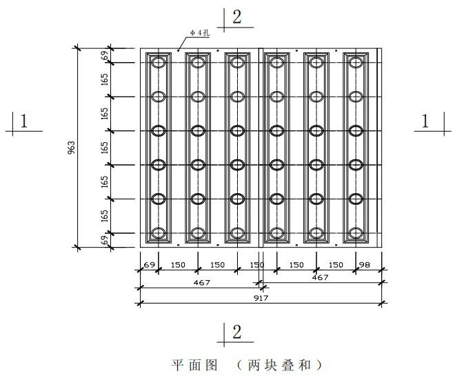 注:孔距尺寸為標(biāo)準尺寸,必要時可根據(jù)濾池設(shè)計要求,采用特殊模板確定。